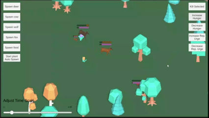 Simulation of interactions between carnivores and herbivores using AI techniques for video games.